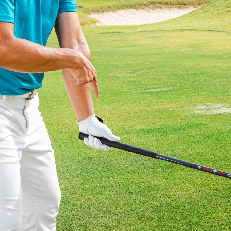 무겁게 느껴지는 방향의 그립을 잡고 스윙을 하면 스윙파워가 향상됩니다.